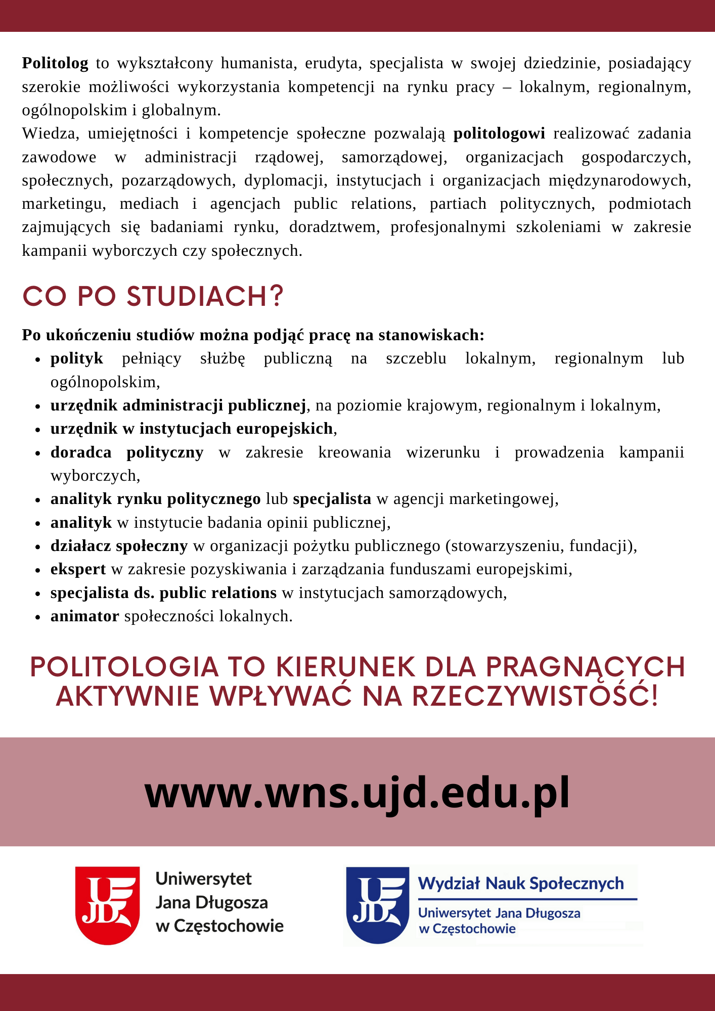 Oferta kierunków studiów na Wydziale Nauk Społecznych Uniwersytetu Jana Długosza w Częstochowie