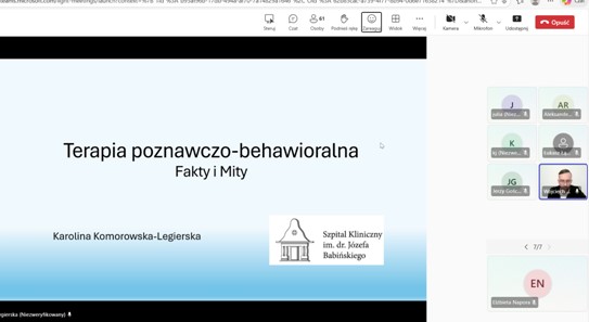 - Mgr Katarzyna Komorowska - Legierska (Szpital Kliniczny im. J.Babińskiego w Krakowie), Terapia poznawczo - behawioralna. Fakty i mity