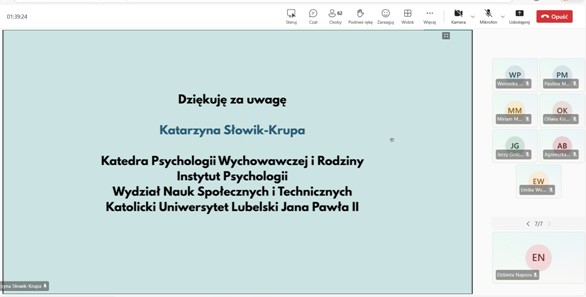 - Mgr Katarzyna Słowik - Krupa, Katedra Psychologii Wychowawczej i Rodziny KUL JP II, Co jest nie tak z moim dzieckiem? Problematyka diagnozy psychologicznej w kontekście terapii dzieci i młodzieży w ujęciu psychodynamiczno-systemowym