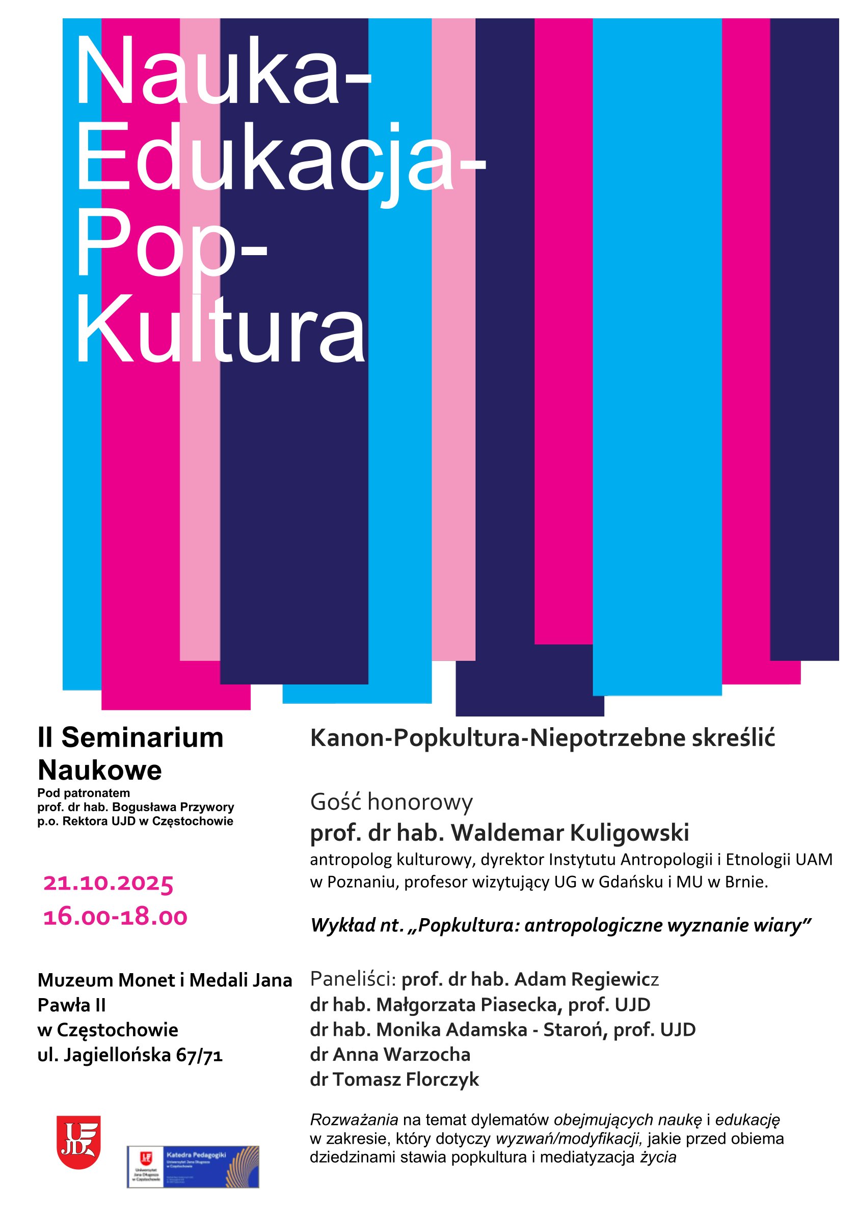 Zapraszamy Państwa do wzięcia udziału w II edycji Seminarium Naukowego: " Nauka - Edukacja - Pop - Kultura", koncentrującego się na relacji: (pop)kultura – nauka – edukacja.