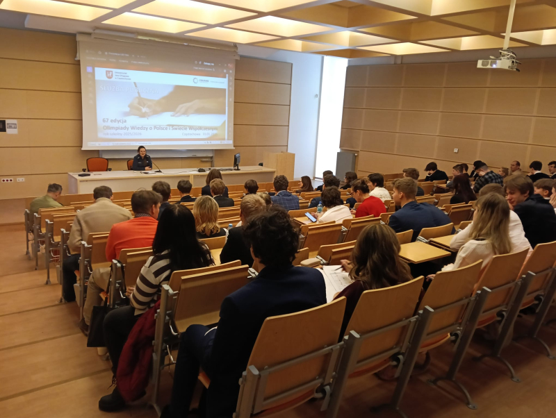 W dniu 31 stycznia w gmachu UJD przy ul. Zbierskiego 2/4 odbyły się zawody okręgowe 67. edycji Olimpiady Wiedzy o Polsce i Świecie Współczesnym. W tegorocznym etapie okręgowym wzięło udział niemal 100 uczniów reprezentujących ponad 40 szkół z całego województwa śląskiego, którzy przyjechali do nas z rodzicami, nauczycielami i opiekunami by rywalizować o tytuł najlepszych w okręgu. Uczniowie zostali wyłonieni w ramach etapu szkolnego Olimpiady, który miał miejsce w listopadzie ubiegłego roku, gdy do zawodów przystąpiło ponad 300 uczniów.