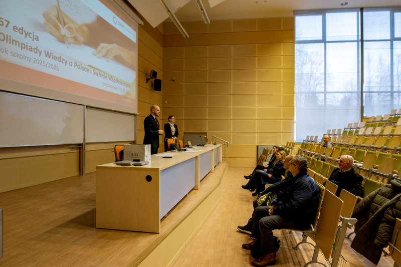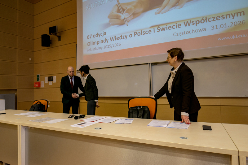 Olimpiada Wiedzy o Polsce i Świecie Współczesnym jest wydarzeniem o ogromnym znaczeniu edukacyjnym i promocyjnym, organizowanym przez Wydział Nauk Politycznych i Studiów Międzynarodowych Uniwersytetu Warszawskiego na zlecenie Ministerstwa Edukacji Narodowej, natomiast Katedra Nauk o Bezpieczeństwie, w ramach której funkcjonuje Komitet okręgowy, reprezentuje UJD jako współorganizatora zawodów na poziomie województwa śląskiego. Zawody okręgowe z ogromnym zaangażowaniem, pasją i oddaniem przeprowadzili Pracownicy Katedry: dr hab. Andrzej Krzak prof. UJD, dr Malwina Siewier, dr inż. Ewa Makosz, dr Dariusz Gregorczyk, dr Tomasz Grabowski, dr Grzegorz Piątkiewicz, doktorantka Szkoły Doktorskiej UJD mgr inż. Karina Gierlach oraz niezastąpieni Studenci kierunków prowadzonych przy Katedrze: Zuzanna Jaksender, Patrycja Szczepańczyk i Maja Najuch. Natomiast nad całością organizacji etapu okręgowego czuwała Sekretarz Komitetu okręgowego, dr Małgorzata Kuś, której życzliwe i sprawne dowodzenie przyczyniło się do sukcesu organizacyjnego tego dnia!